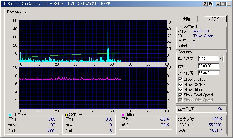 Plextor PX-W4012TA + 太陽誘電32倍速80分シルバープリンタブル