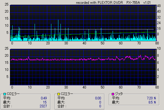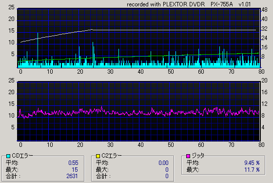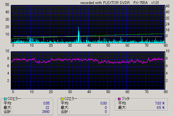 ドライブ Plextor PX-755A (1.01)メディア TDK 32倍速 80分 シルバープリンタブル(太陽誘電OEM)