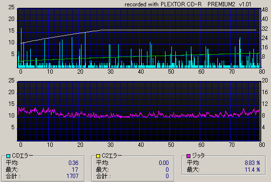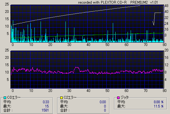 ドライブ Plextor PremiumII (1.01)メディア 太陽誘電 48倍速 80分 ホワイトプリンタブル