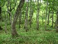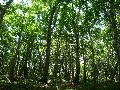 案内板によると一帯は山の遊園地といった様相で、林道もあり、一見どこへ行っても良さそうだが、妻の判断により、まずは登山道をたどって、てっぺんのブナ林を目指すことにした(後でこの判断が正しかったことがわかる。どうもこれがここのメインらしい)。ゆるやかな山登りの道といった風情の涼やかな道を1時間弱で、目的地に着いた。全体に細身だが心なごむブナ林が広がっている。一帯は下草が刈り込まれて、ブナの美しさを引き立てていた(が、これでいいのか? ^^;;)。ここで昼食。