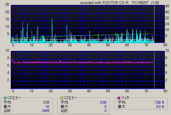 CD-Rにおける(緋)色の研究 Whiteの測定編ドライブ内を真っ白にして焼いています。詳しい条件はCD-Rにおける(緋)色の研究本編で