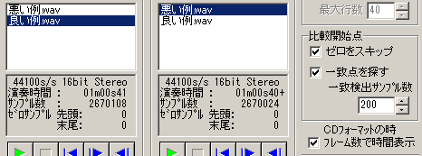 テストをした時、「あれ?、2サンプル合わない??」などといったことがありませんでしたか? そういう現象は、テストに用いたWAVが原因の恐れが大です。「CD-DAのフレームに合わせた長さ」のWAVが必要なんです。