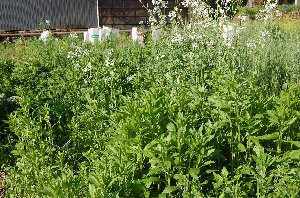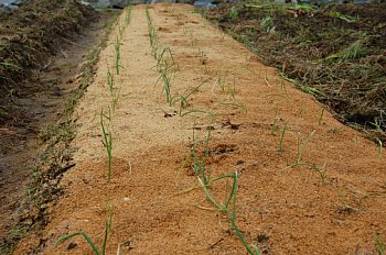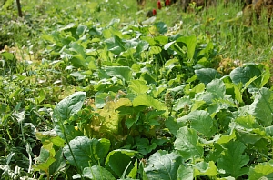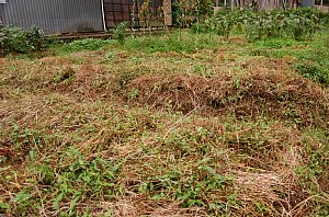草マルチの材料となる草は、畑内でほぼ自給できるぐらいになりました。もっと厚くしてもいいですが、いままで畑になかった草の種を持ち込むのもどうかとも思います。