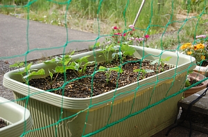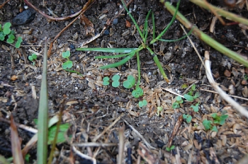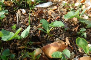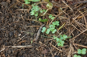 画像は、11月初めに蒔いて、もう芽が出ないと思っていたのに芽が出てくれた小松菜です。春に期待してみましょうか(笑)。