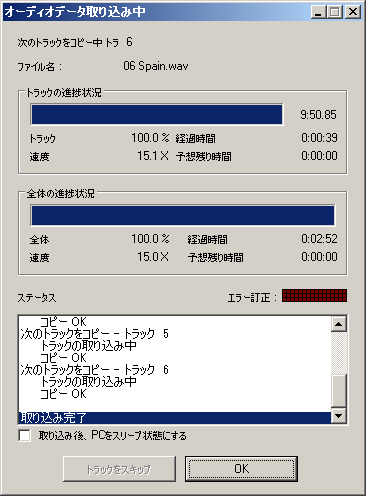 - 再生時にもリッピング時にも、音は同じ(ま、こういう人は区別して考えたりしないでしょうが・・)。