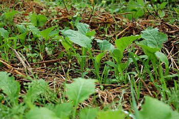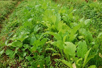 9月20日蒔きの、小松菜、折菜、くきたち菜、も程よいサイズになってきました。