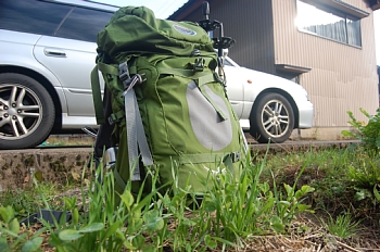 ザックも古くなったので新しく買いました。オスプレイのイーサー60Lです。今まで真っ赤だったので、気分を変えてみました。手前のえんどうと同じ色ですね。この色だと山に置き忘れてきそう?(笑)。