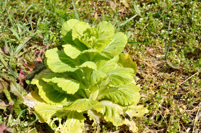 よその畑をみると、大根をはじめ白菜などアブラナ科の野菜が大きく育っている。耕して農薬と化成肥料を使えばそれくらいになるのだろう。したくはないが、そんな畑を見るとへこむことも確かだ。この前、妻が学校の子供のおばあさんからレタスや菜っ葉類をごっそりもらってきた。かなり大きい。(これはちょっと大きすぎる。味があまりしない。)と、心の中で思っても、嬉しそうにしている妻の前では口が裂けても言えない(笑)。