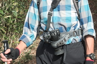 カメラホルスターライトの購入により、山登り中のカメラは当面APS-Cデジタル一眼レフ+軽い標準ズームに決定した。重量計が750g。きびしい登山でなければ、つまり普通の日帰りで現在の体力であれば、このくらいはなんでもない。カメラがブラブラせず、瞬時?に抜き差しできるのは快適だ。今年始めからもっと軽いカメラ、ポケットに入るカメラを物色してきたが、それも不要になった。