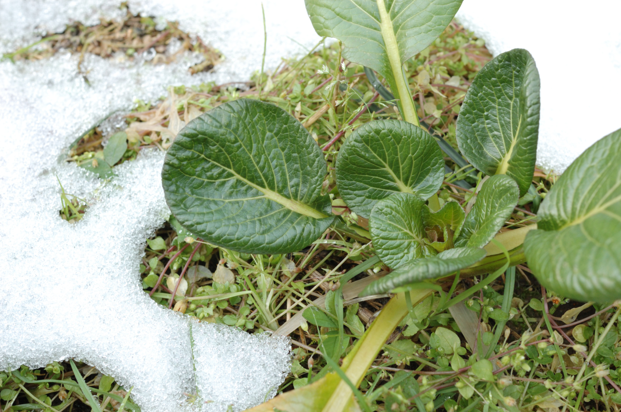 これではいかんので、秋に春先用の野菜を育てておく。暖かくなるとそれが真っ先に口に入る。1年目は案外うまくいって、サラダ菜も菜花も食べられたのだが、2年目の昨年は雪が長くてやられたせいか、やり方がまずかったのか、何もなかった。それで、急きょ、レタスの苗を買ってきたのだった。