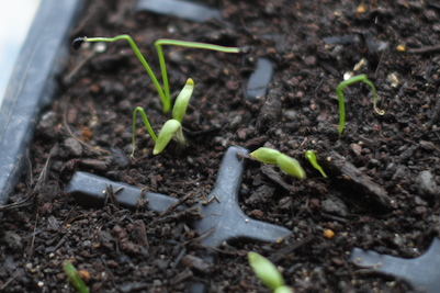 種蒔きにようやく慣れて来たかもしれない。このように小さい種が袋に沢山あると、つい密に蒔いてしまいがちで、適当な間隔で蒔くのが案外難しいのだ。筆者もよくやったが、昨年、妻にレタスの種を蒔いてもらったらびっしりと生えてきて、間引きに困ったのでそのまま放置しておいた(笑)。