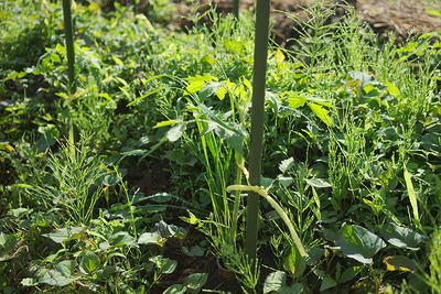 筋蒔きしているのは除草しやすくするためで、一回しておけば、後はもう野菜の邪魔になるほど大きくならないはずだ。