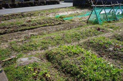 十分に広ければ雑草たっぷりの中で野菜を育てればいいが、普通そうはいかない。雑草が多ければ野菜の育つスペースが無くなり、野菜が多ければ雑草による土の改善効果が弱くなる。筆者の方式は、慣行農法とあまり変わらない密度で野菜を育て、雑草不足は草マルチで補う方式だが、やはり、雑草生えっぱなし期間が長い場所のほう土が良さそうである。