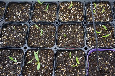 育苗中の大玉トマトとシシトウ。