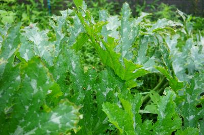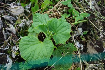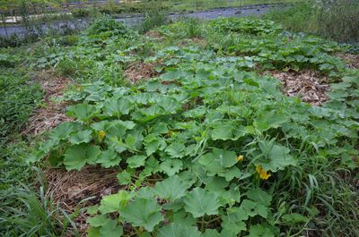 かぼちゃ跡地に育つみぞそば。まだ花はつけていない。