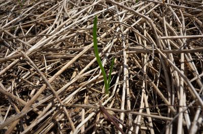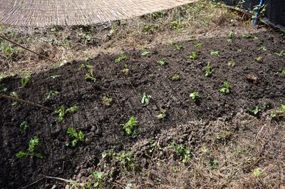 昨年の簡易温室のあまりな人工度の強さに嫌気がさし、今年は以前からやっている陽だまり育苗。いつもヤキモキするが、発芽が遅い。これで2週間経ったところ。安定して早く発芽する簡易温室が早くも恋しくなったかも(笑)。