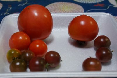 雨が降る前に、少し青いのも含めてミニトマトを収穫。これだけの量は今年最後かな。