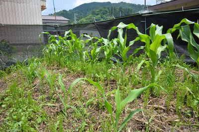 家の前の畑に設置した猿対策のネットである。昨年は被害がなかったので、今年は自信をもって猿が好きだというトウモロコシを作ったのだが、それが狙われた。収穫にはまだちょっと早いスイートコーンが3つ食べられていた。皮を綺麗にむいて、綺麗に食べてある。そして、侵入と脱出の経路になったと思われるネットが酷くたわんでいた。猿落君も万全ではないと聞いてはいたが、人家のすぐ傍だし、安心していたのが甘かったのか。