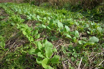 丹波黒豆、さやいんげんの収穫は最盛期を過ぎようとしている。ナスやトマトは終わったが、ピーマンとシシトウはまだ細々と続いている。今年の大根はなぜか生育が遅い。初回蒔きのほうれん草はそろそろ食べ頃だ。10月1日に蒔いたツケナ類はまだ小さいが生育はまあまあに見える。